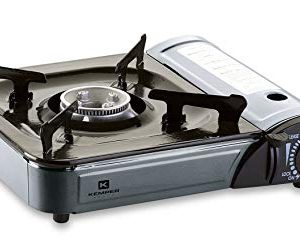 Fornello elettrico Piastra in ghisa diametro 90 mm Struttura in acciaio inox Termostato di sicurezza contro il surriscaldamento Base antiscivolo Compatto, ideale per viaggi, camping, ufficio e abitazione.